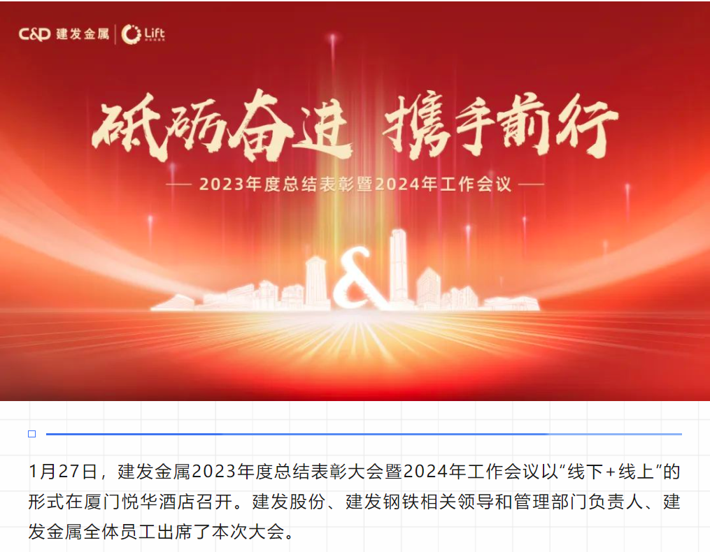砥礪奮進(jìn),攜手前行| 建發(fā)金屬召開(kāi)2023年度總結表彰大會(huì )暨2024年工作會(huì )議
