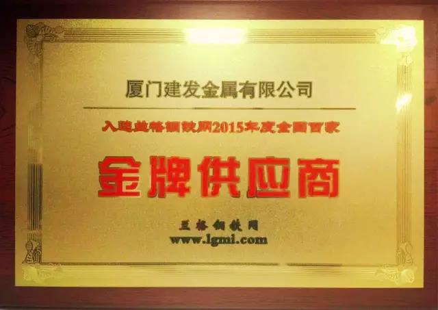 建發(fā)金屬公司再獲“金牌供應商TOP100強”