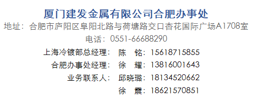 為充分發(fā)揮合肥辦事處的作用,建發(fā)金屬總經(jīng)理張清華,副總經(jīng)理伏廣州、孫龍,總經(jīng)理助理吳輝明,上海冷鍍部總經(jīng)理陳銘等近日前往合肥調研。