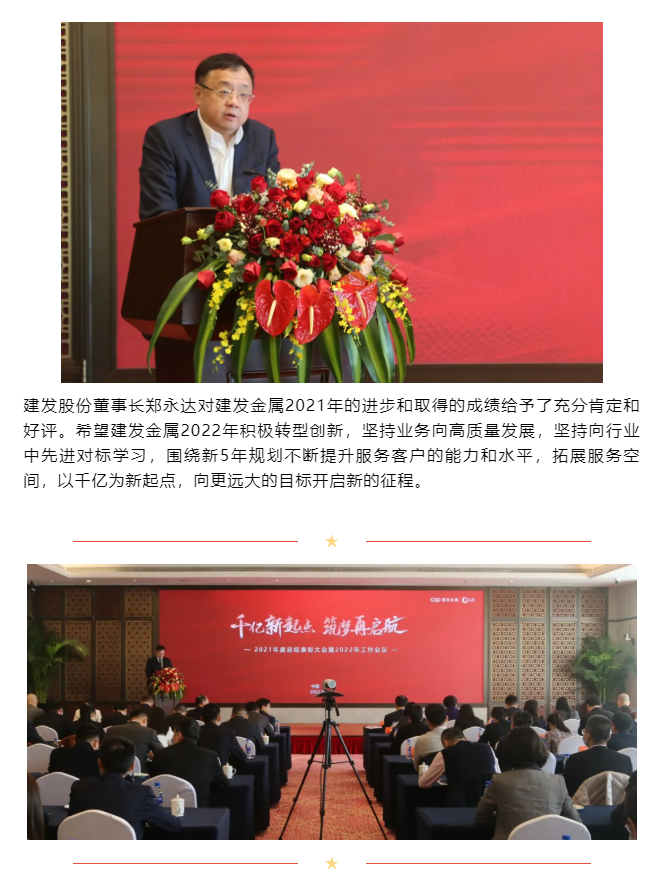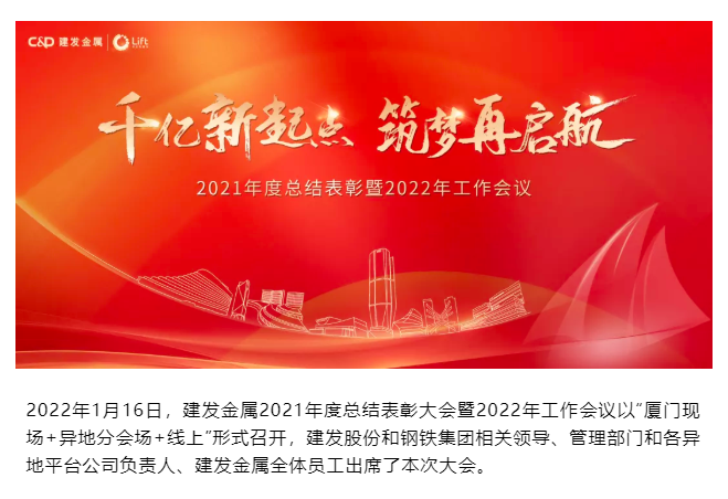 1000億!千億新起點(diǎn),筑夢(mèng)再起航——建發(fā)金屬召開(kāi)2021年度總結表彰大會(huì )暨2022年工作會(huì )議
