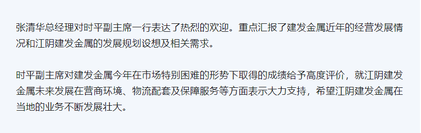 江陰市政協(xié)副主席、商務(wù)局局長(cháng)時(shí)平等一行來(lái)訪(fǎng)建發(fā)金屬